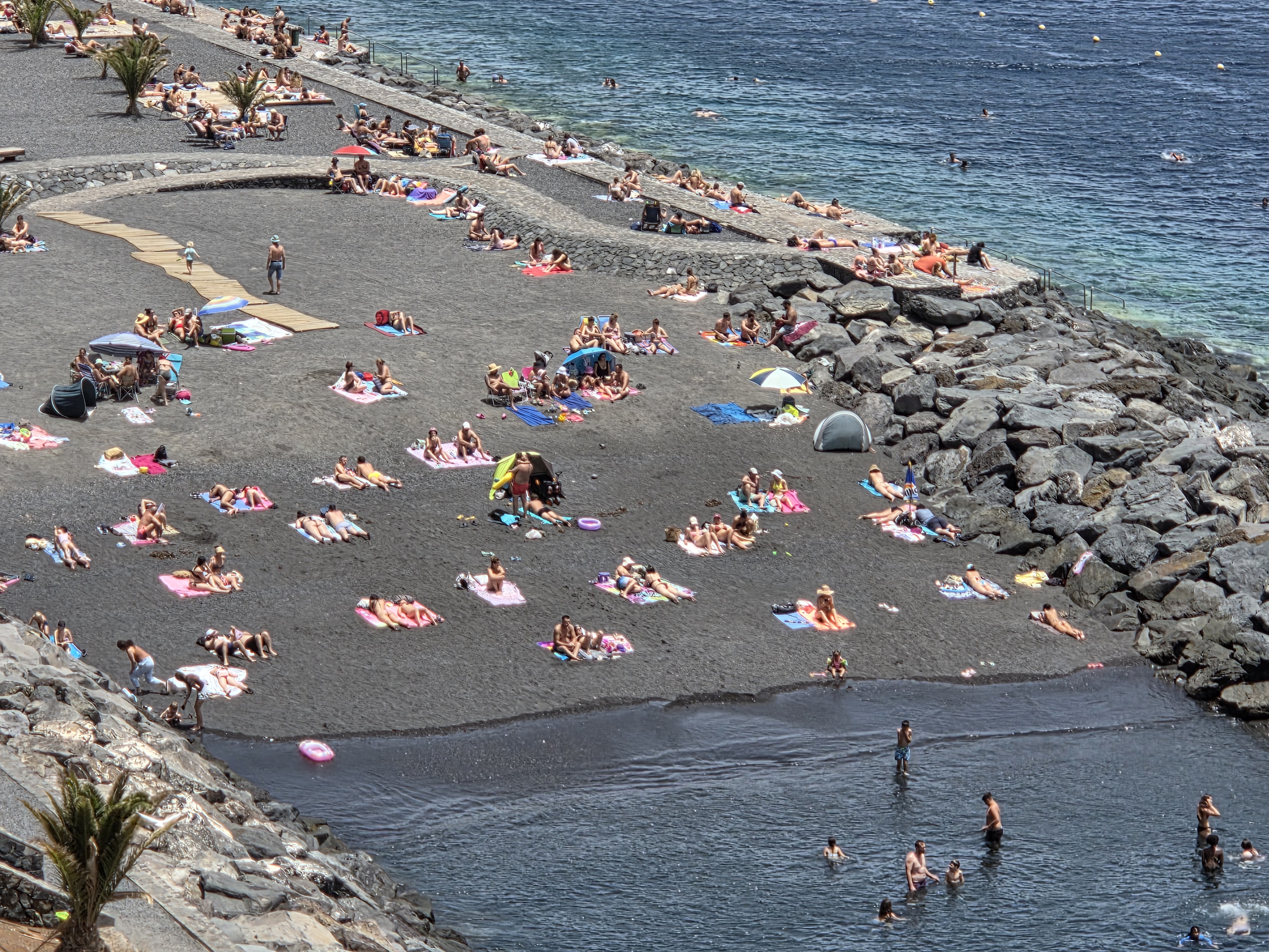 Playa de Radazul cuenta con dos pequeñas calas de arena negra volcánica. Su escollera la protege del oleaje, proporcionando aguas tranquilas y seguras para el baño.