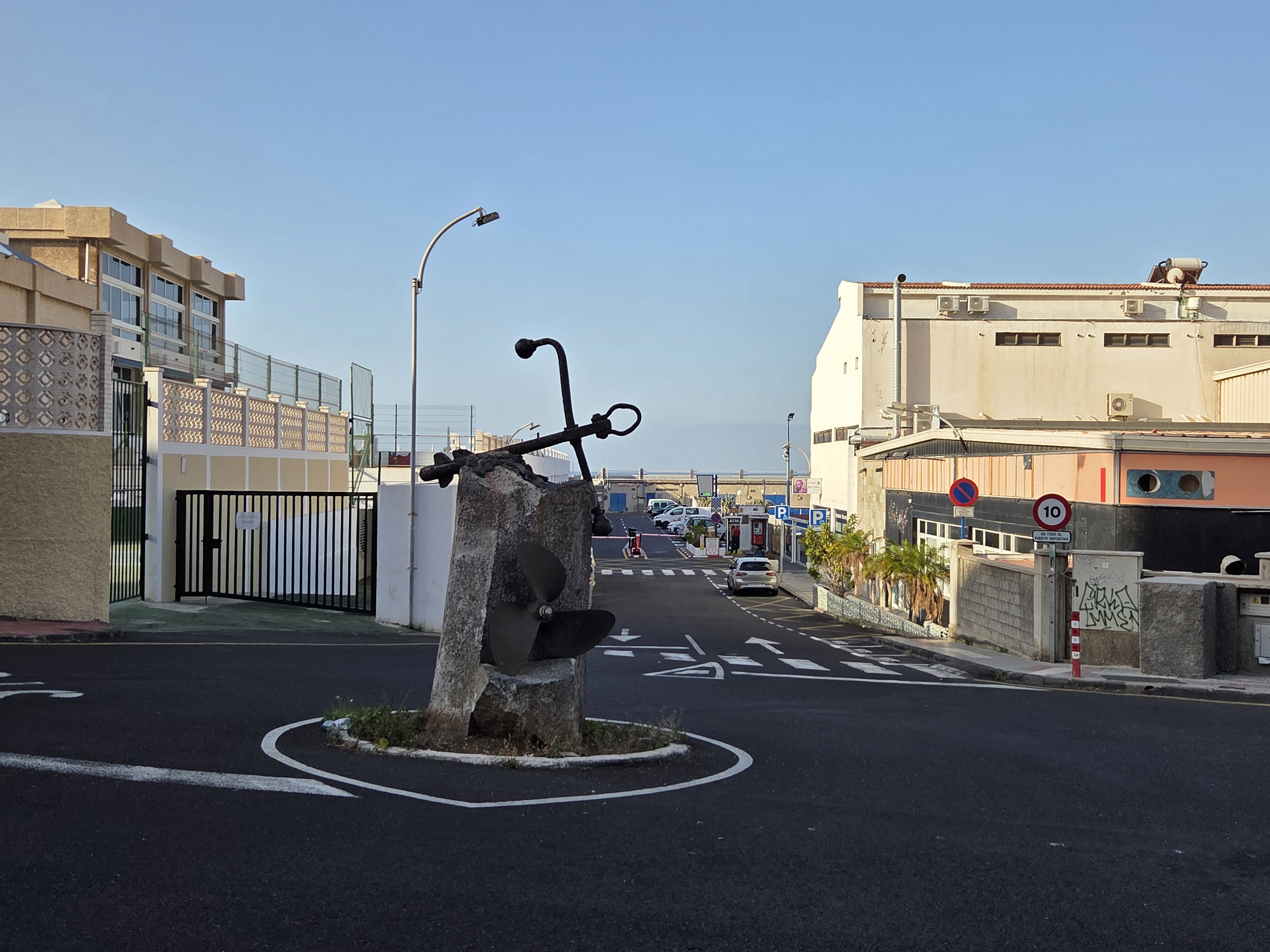 El acceso al puerto está bien señalizado y cuenta con zonas de aparcamiento. Un monumento con forma de ancla y hélice da la bienvenida a los visitantes, reforzando el carácter marinero del lugar.